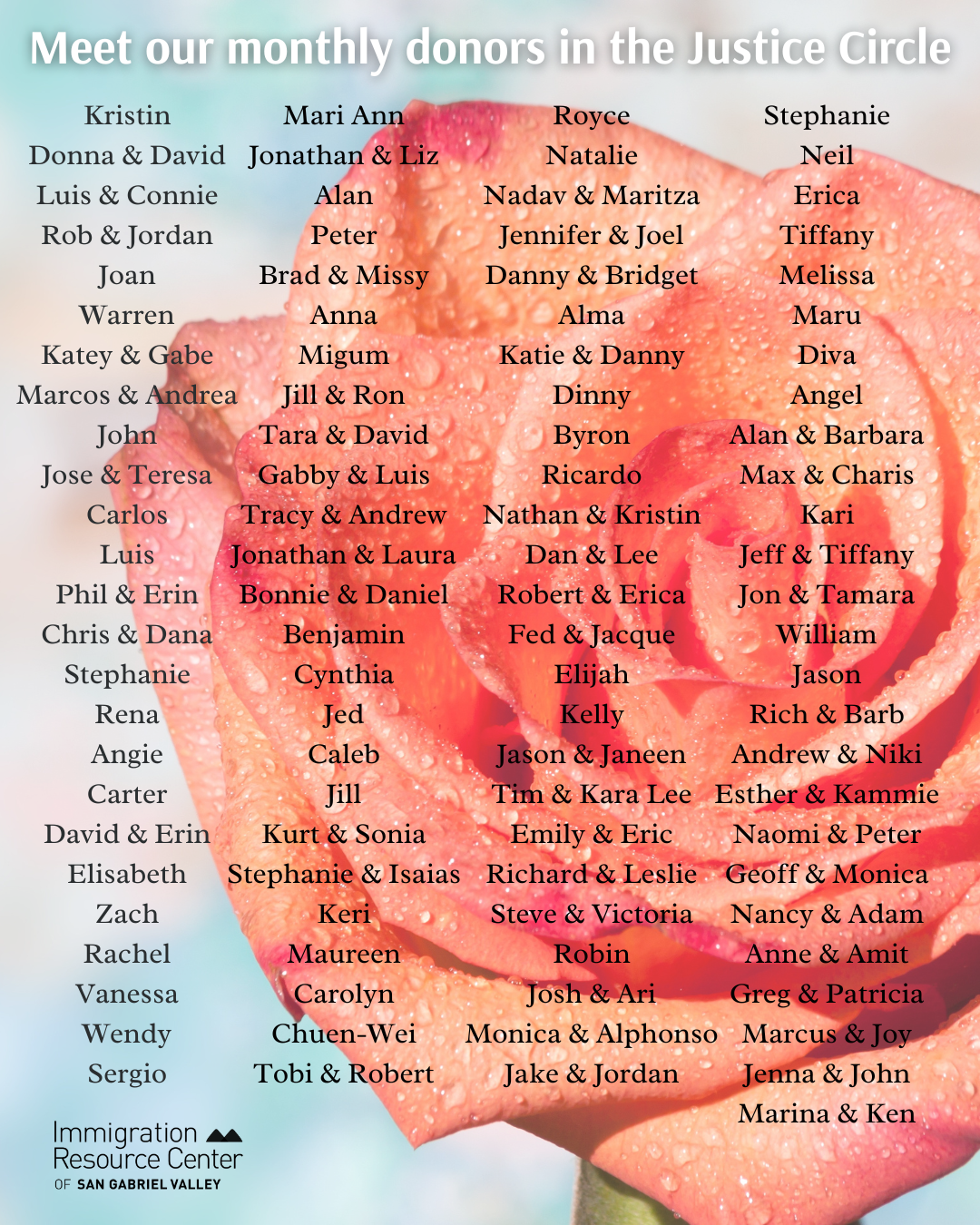 Monthly giving ensures the long-term viability of our work on behalf of our immigrant neighbors. At the IRC we are dreamers and do-ers. Sustained giving allows the IRCSGV to continue our present work, plan for the future and expand services in these challenging times.